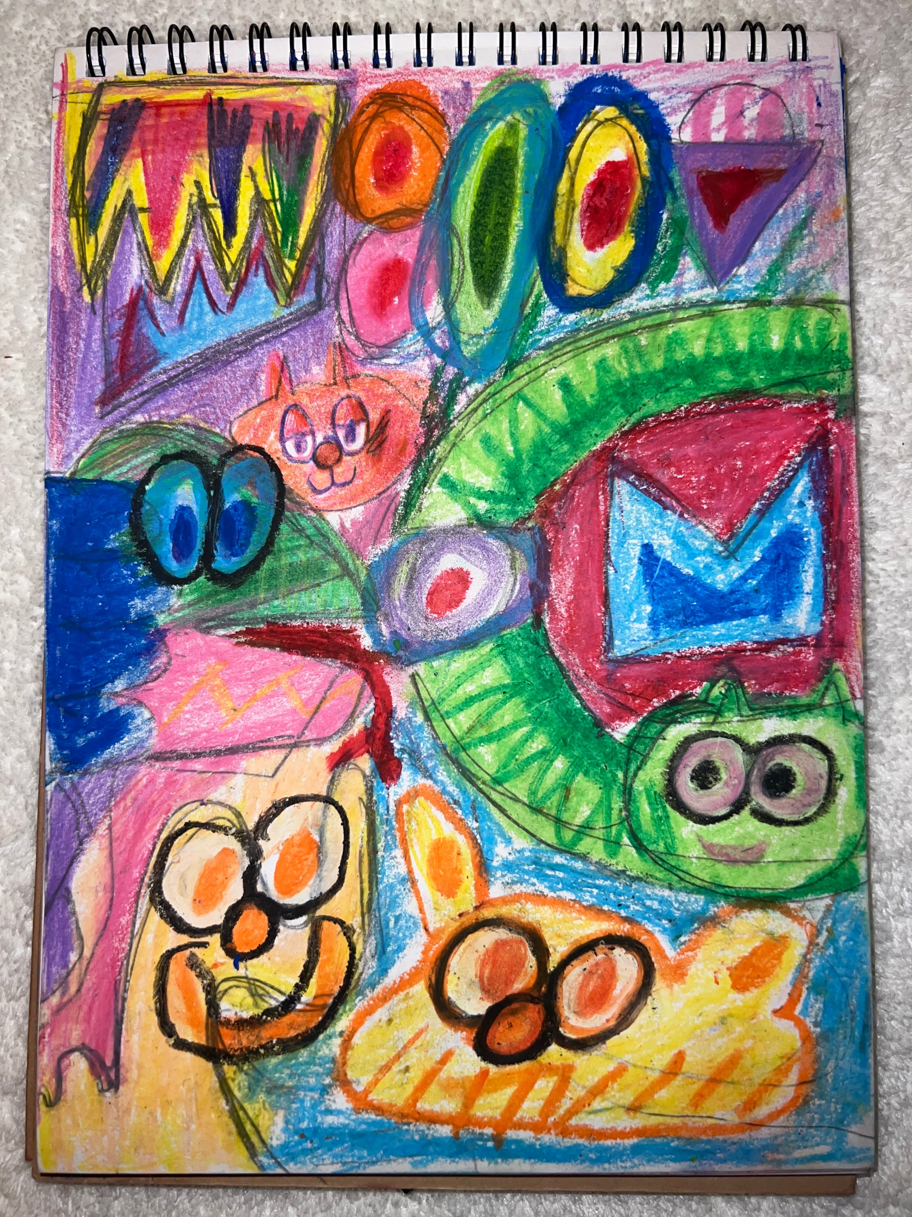 Crayon and colored pencils on drawing paper